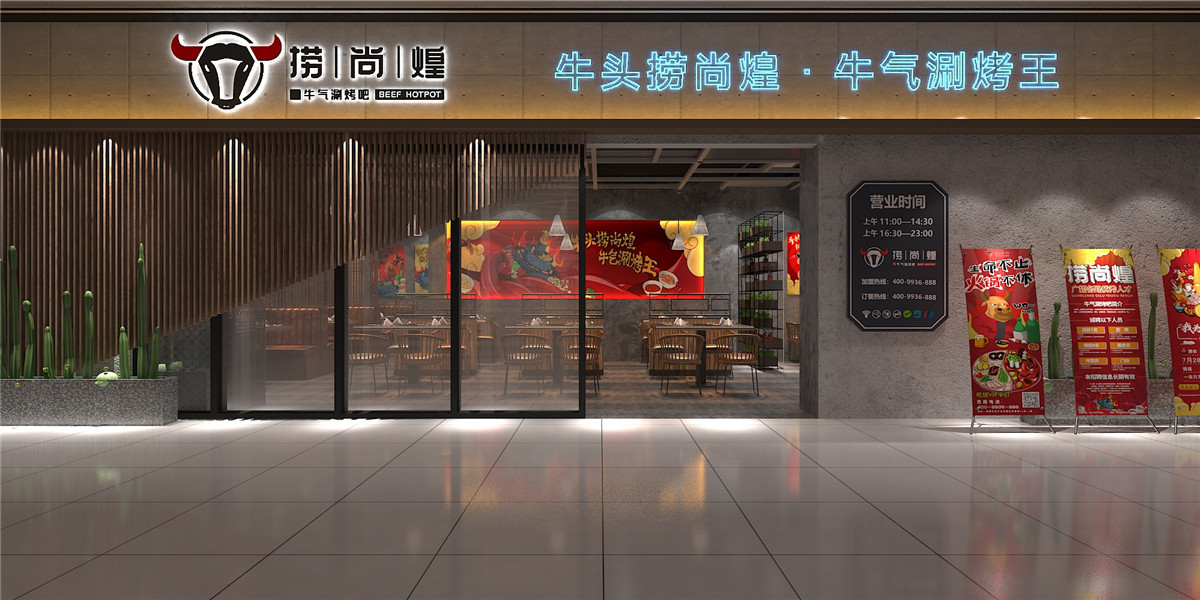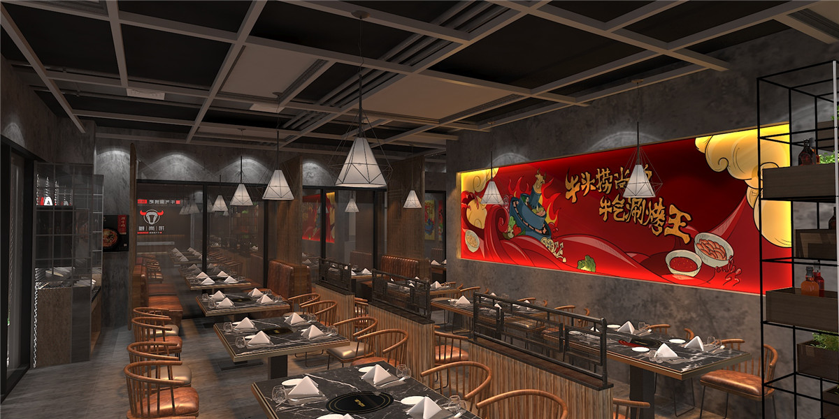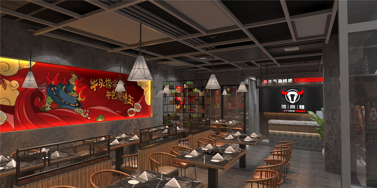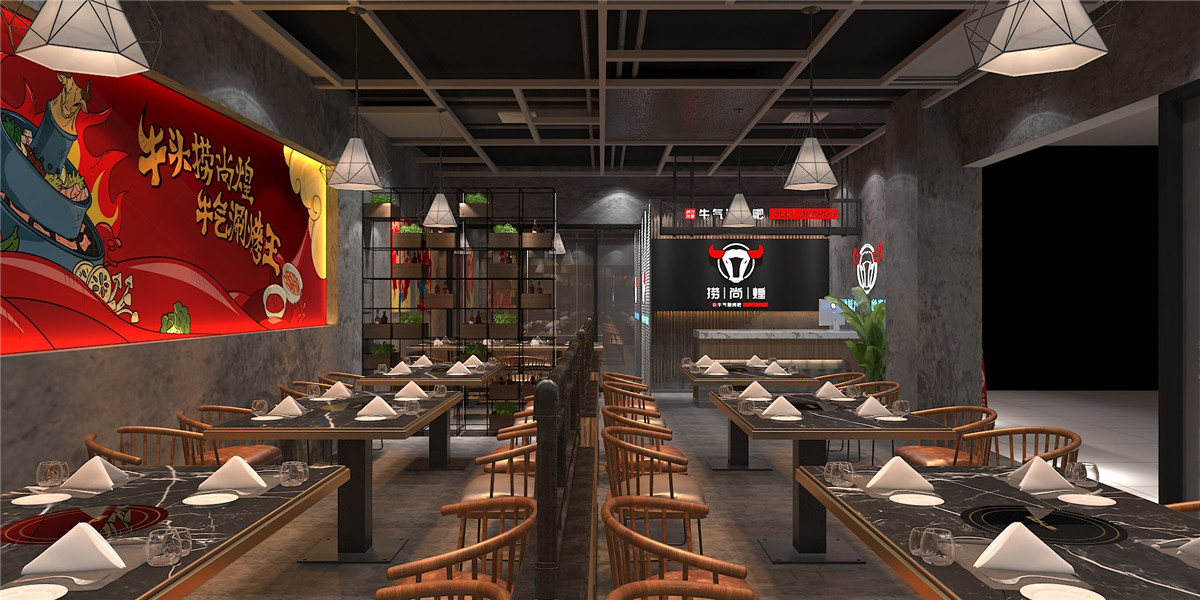 案例介紹:撈尚煌,特色涮烤吧連鎖品牌,項目從設計到施工到落歷時2個月,以深灰色為主色調,工業與現代元素融合,為夜餐生活創造獨特氛圍。