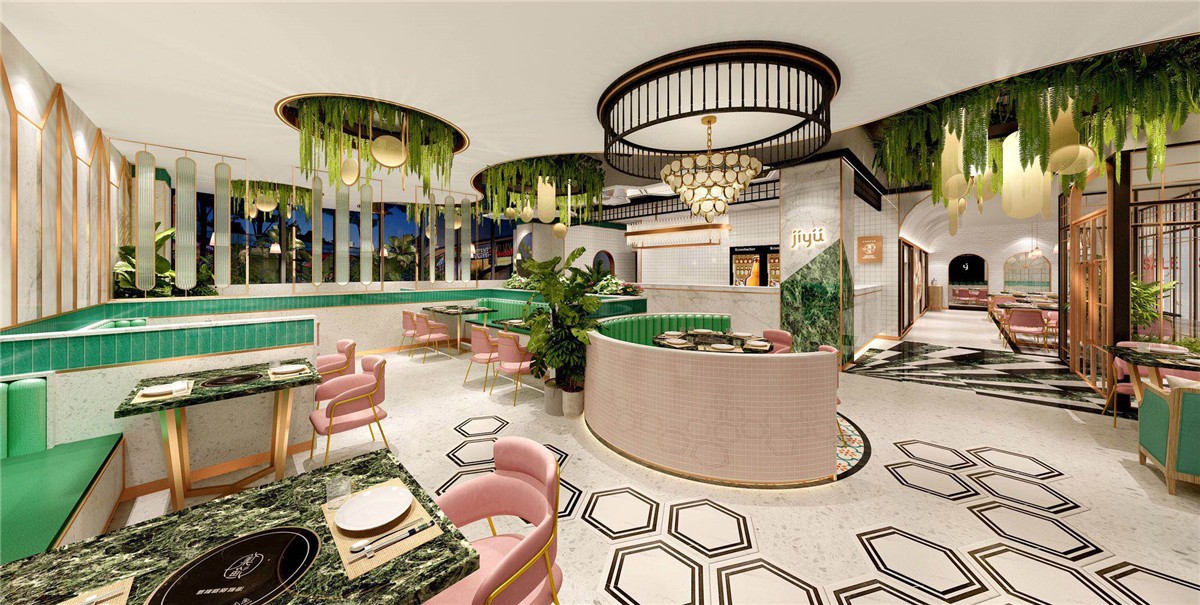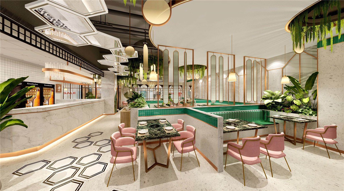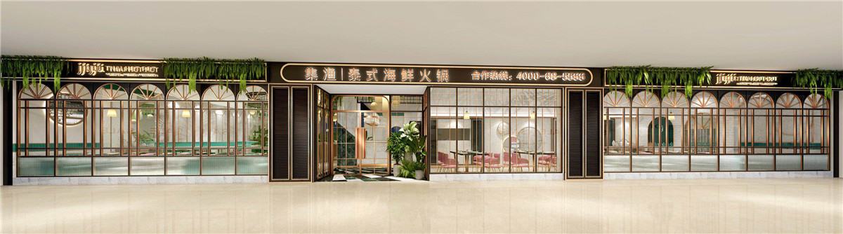 案例介紹:泰式風格的魚火鍋餐廳,輕奢風格,結合綠色熱帶風情。